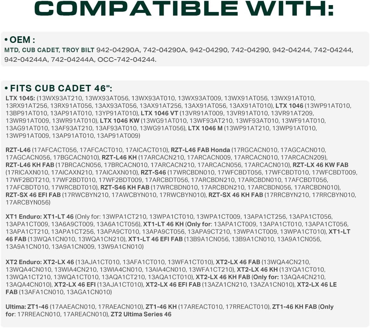 Compatible with: 942-04308 Cub Cadet 42 inch Mower Blades 6 Point Star LTX 1040 (13AX90AS009, 13AX90AS010, 13AX90AS056, 13AX90AS210, 13AX90AS209, 13AX90AS256, 13WX90AS009, 13RX90AS056, 13RX90AS256, 13WX90AS010, 13WX90AS056), XT1-LT42 (13A6A9CS010, 13A6A9CS056, 13A6A9CS210, 13A8A9CS056, 13WVA1CS210, 13WVA1CS010, 13WVA1CS009, 13W8A1CS010, 13AVA1CS256, 13AVA1CS056, 13AVA1CS009, 13A8A1CS056)
