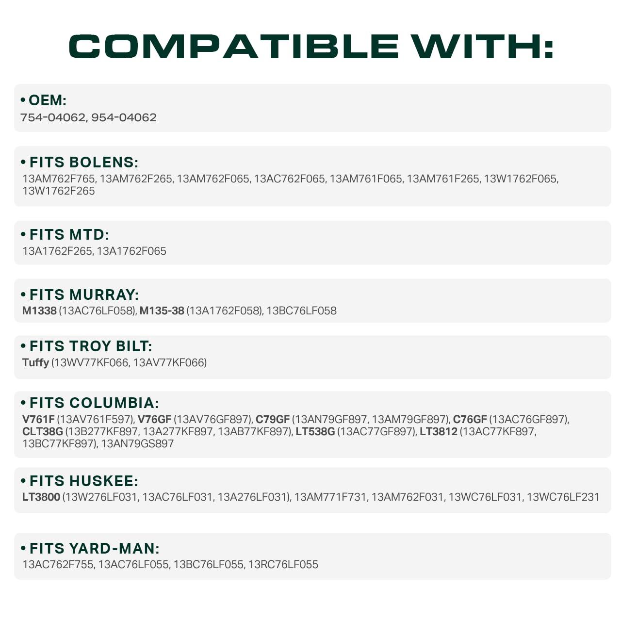 Replaces OEM: Cub Cadet 954-05025A, 754-05025, 754-05025A, 954-05025, 490-501-C064, 490-501-M064, 490-501-F064, Craftsman CMXGZAM501064