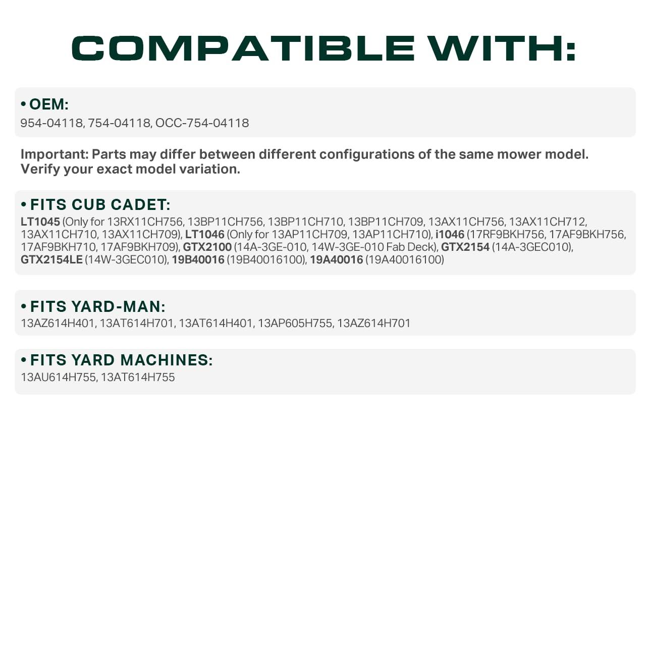 Replaces OEM: Cub Cadet 954-05025A, 754-05025, 754-05025A, 954-05025, 490-501-C064, 490-501-M064, 490-501-F064, Craftsman CMXGZAM501064