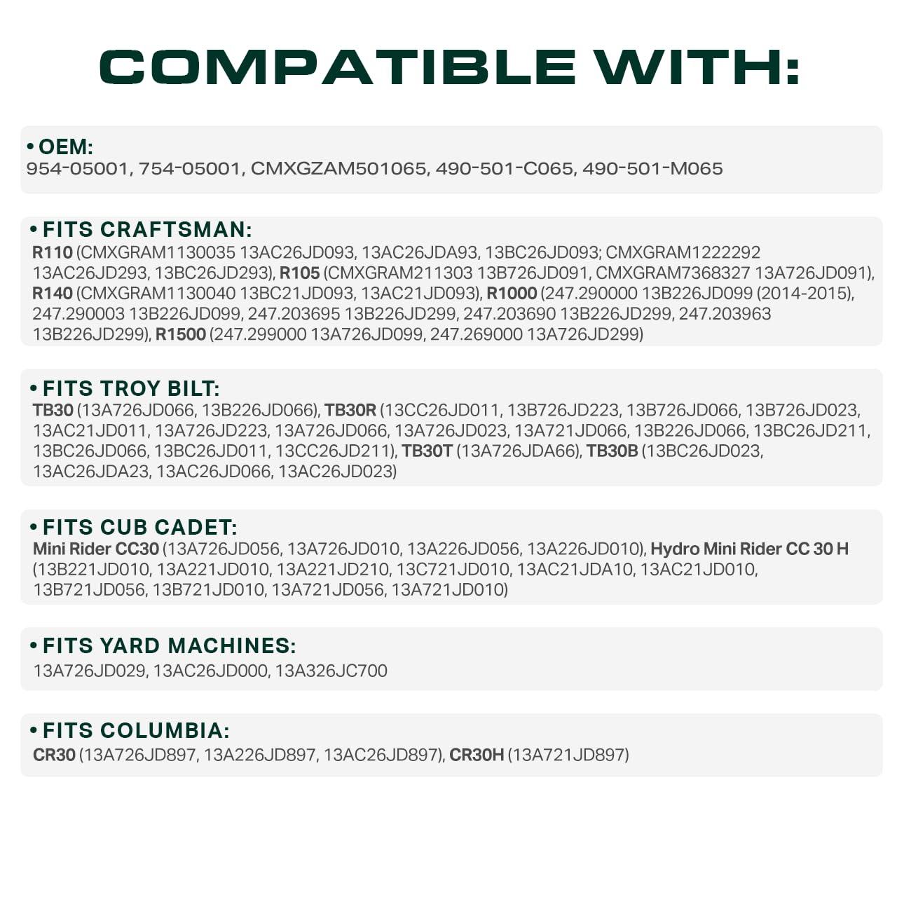 Replaces OEM: Cub Cadet 954-05025A, 754-05025, 754-05025A, 954-05025, 490-501-C064, 490-501-M064, 490-501-F064, Craftsman CMXGZAM501064