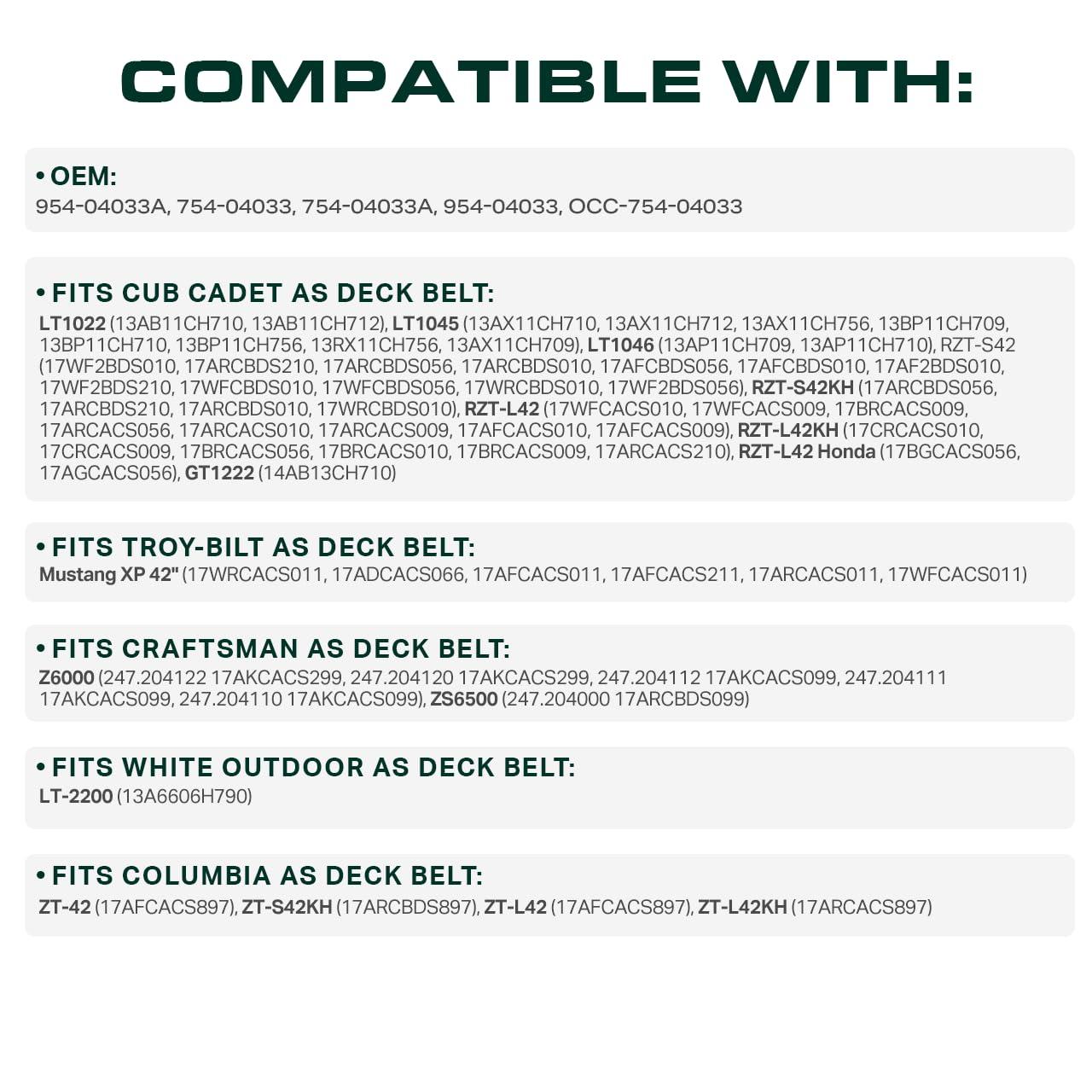 954-05025A 54 Inch Deck Belt Compatible with Columbia CGT5426 (14A7A3KW897), CGT5426FAB (14B7A3KA897, 14A7A3KA897), CSLT5424 (13BQA2KW897, 13AQA2KW897)