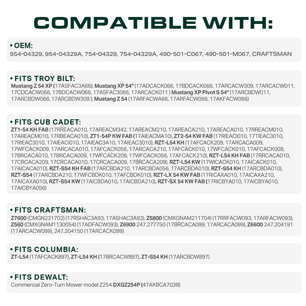 Replaces OEM: Cub Cadet 954-05025A, 754-05025, 754-05025A, 954-05025, 490-501-C064, 490-501-M064, 490-501-F064, Craftsman CMXGZAM501064