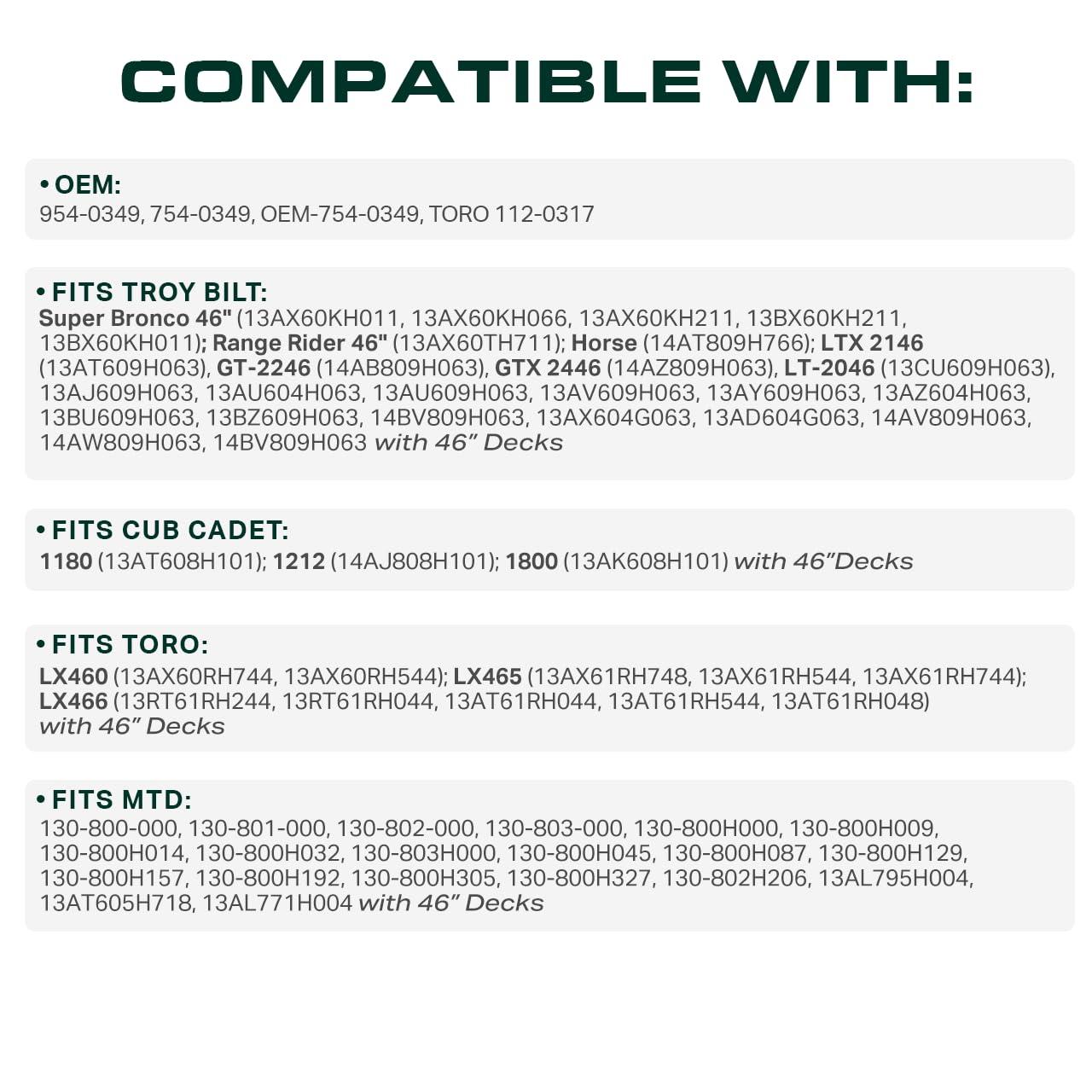 Replaces OEM: Cub Cadet 954-05025A, 754-05025, 754-05025A, 954-05025, 490-501-C064, 490-501-M064, 490-501-F064, Craftsman CMXGZAM501064