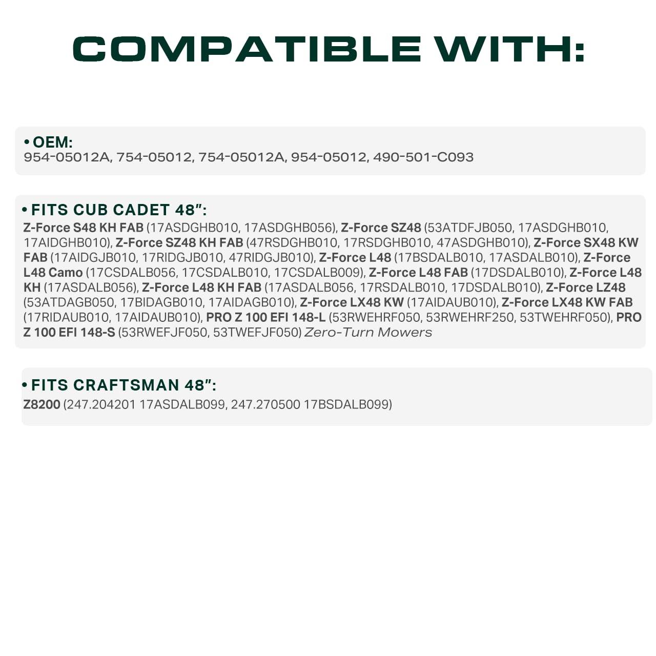 Replaces OEM: Cub Cadet 954-05025A, 754-05025, 754-05025A, 954-05025, 490-501-C064, 490-501-M064, 490-501-F064, Craftsman CMXGZAM501064