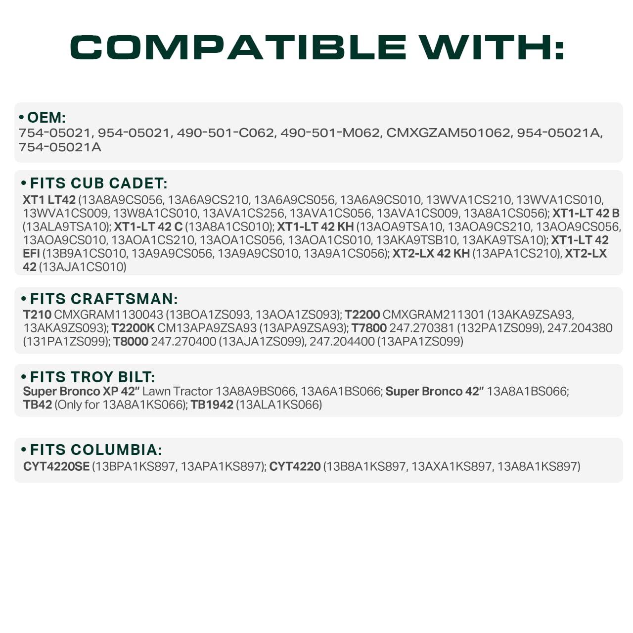Replaces OEM: Cub Cadet 954-05025A, 754-05025, 754-05025A, 954-05025, 490-501-C064, 490-501-M064, 490-501-F064, Craftsman CMXGZAM501064