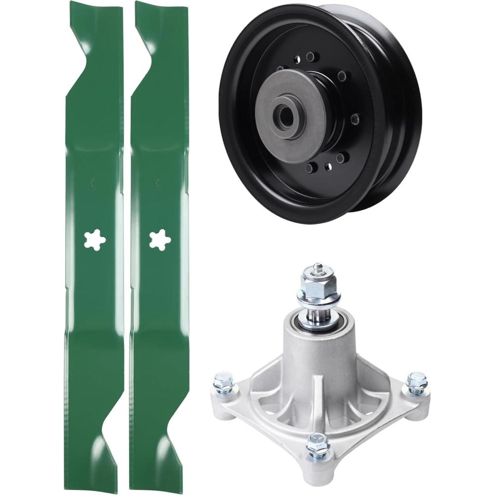 Dimensions: Spindle 532174356: 5-9/16″ (141mm) Height 5.629″ (143mm) Outer Diameter 5 Point Star 1 x spindle, 4 x mounting bolts, 1 x blade mounting bolt, 1 x pulley lock nut, 1 x washer;