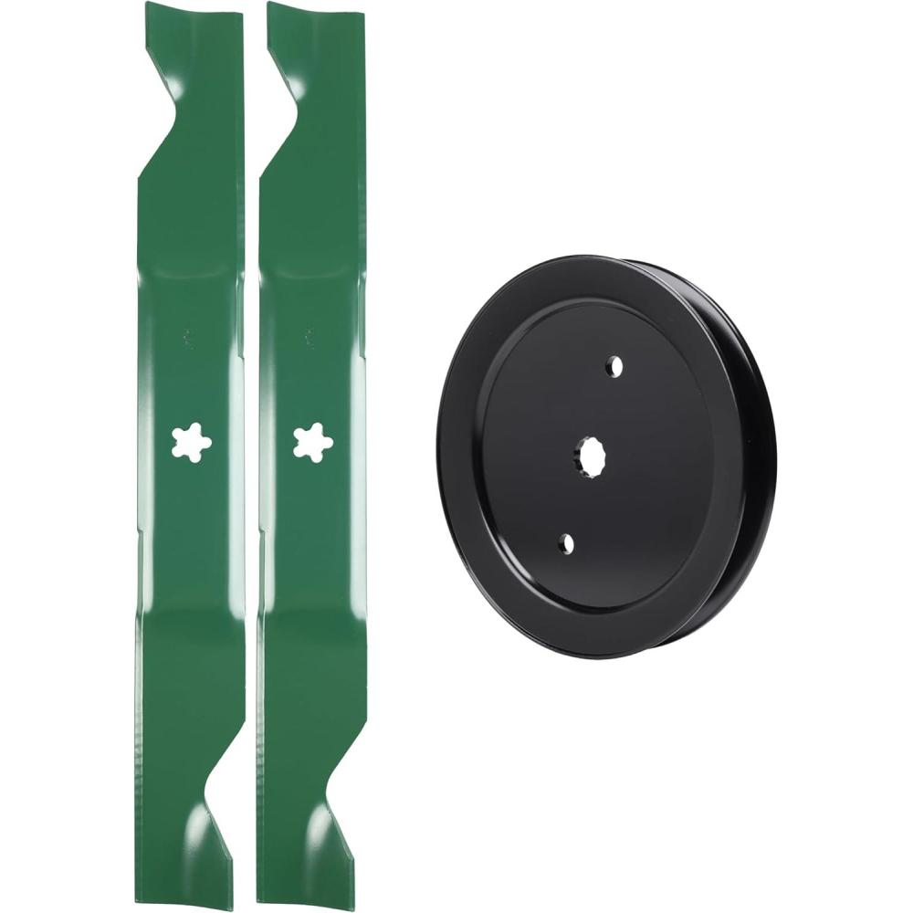 Dimensions: Blade 405380: Length 23″, Width 2-3/4″, Thickness 0,157″, Center Hole 5 point star. For deck size: 46 inch. The length of the blade is measured diagonally from one end to the other;