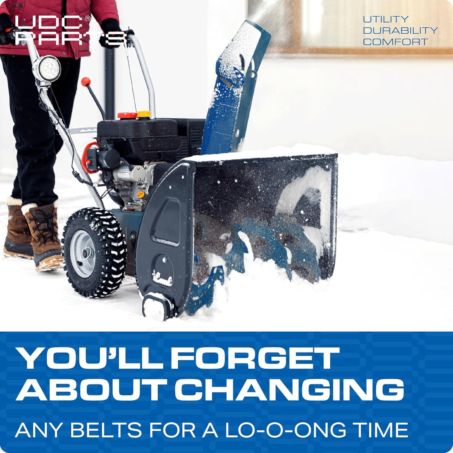 Optimize your snow blower with UDC Snow Thrower Belts for superior adhesion and advanced strength with aramid cords, ensuring top-notch performance. Aramid cords provide exceptional strength for high horsepower demands, ensuring a technically advanced and efficient snow removal experience.