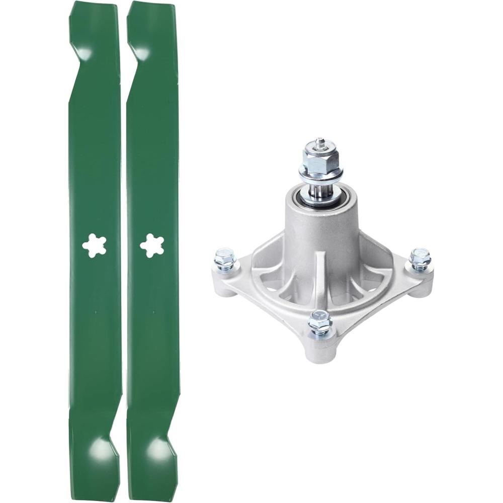 Dimensions: Spindle 532174356: 5-9/16″ (141mm) Height 5.629″ (143mm) Outer Diameter 5 Point Star 1 x spindle, 4 x mounting bolts, 1 x blade mounting bolt, 1 x pulley lock nut, 1 x washer;
