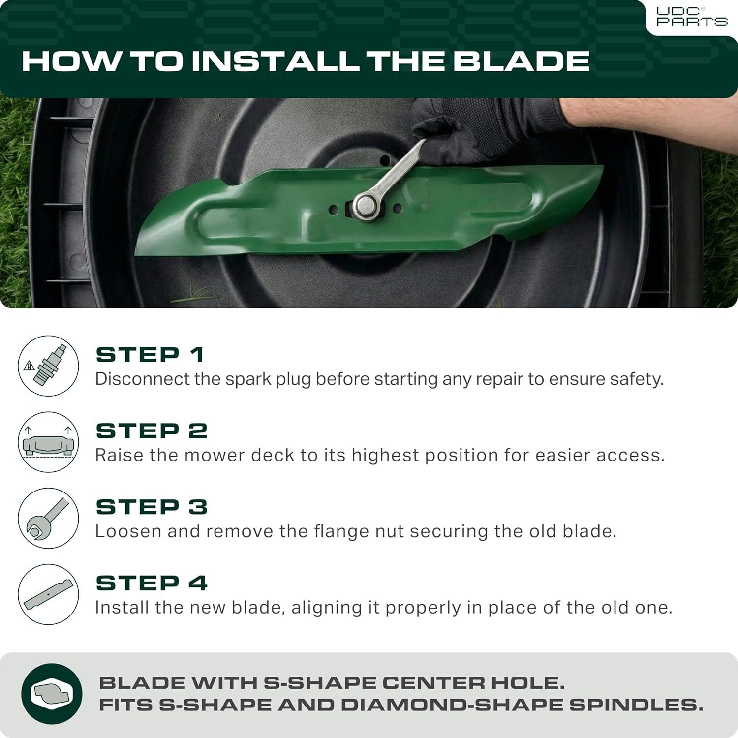 UDC Parts UC22009 Mower Blades Replacement for John Deere 48 Inch 325 335 345 M145476 M127500 M127673 X300 X304 X310 X500 X540 X570 X580 X584 GX255 GX325 GX335 Ztrak Zero‑Turn Z325E / 3 Pack High Lift(742-05086)
