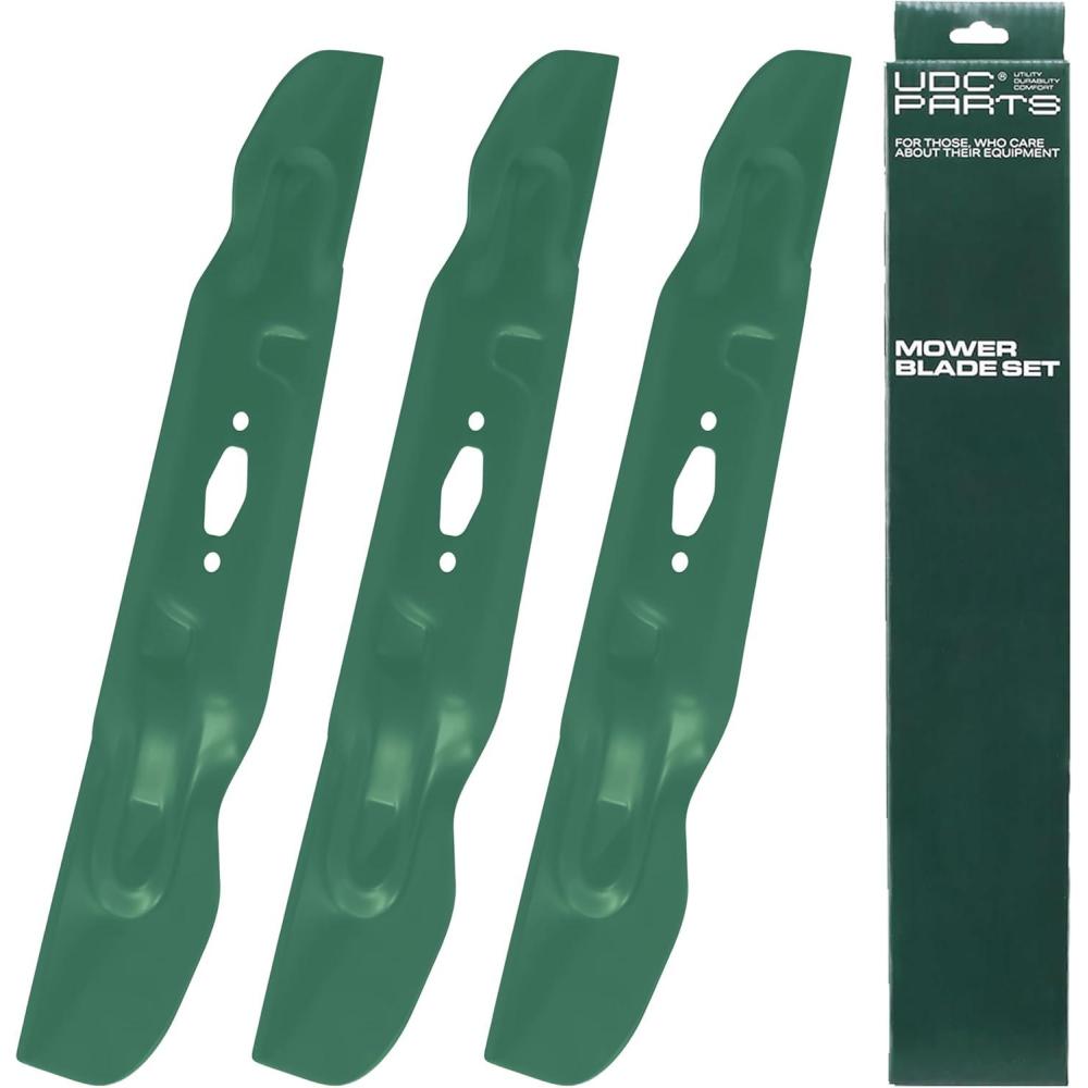 imageUDC Parts UC22009 Mower Blades Replacement for John Deere 48 Inch 325 335 345 M145476 M127500 M127673 X300 X304 X310 X500 X540 X570 X580 X584 GX255 GX325 GX335 Ztrak ZeroTurn Z325E  3 Pack High Lift74205094